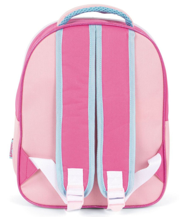 Розова раница Барби, изработена по европейски дизайн, на испанския производителArditex. С 3Dпанел, едно основно отделение с цип, подплатени регулируеми презрамки и дръжка за носене в ръка. Идеалната първа раница за детска градина или училище. Опаковка: полиетиленов плик. Подходящо за момичета над 3 години.