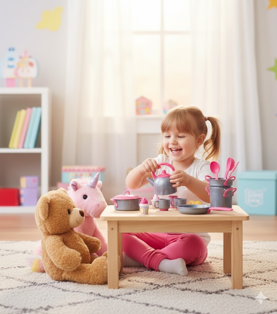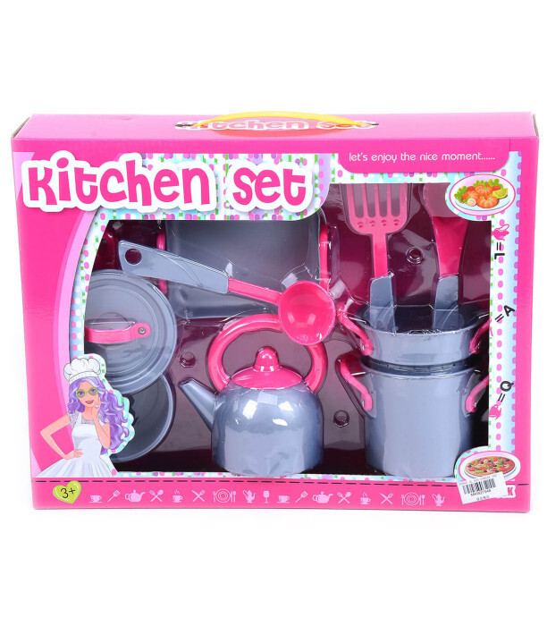 Пригответе се за часове кулинарно забавление! Този пълен кухненски комплект е задължителен за всеки малък готвач. Включва всичко необходимо за приготвяне на въображаеми ястия и сервиране на чай: чайник, тава, дълбока тенджера с дръжки за готвене на пара, тиган с капак и четири прибора за готвене. Комплектът насърчава ролевата игра и е идеален за покана на приятели на вкусен обяд или чаено парти. Играта никога не е била толкова забавна!